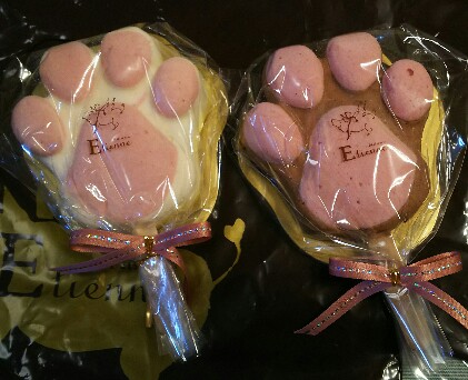 肉球チョコ(=゚ω゚=) 2017/02/17号(Miku) バレンタインシーズンに、こ~んなチョコを いただきました。 肉球チョコ。 なんと!ピンクの肉球部分はマシュマロで プニプニなんですよッ!柔らかい!凄い! さんざんプニプニしてからいただきました(笑)。 1つ新しい蟹通へ|1つ古い蟹通へ